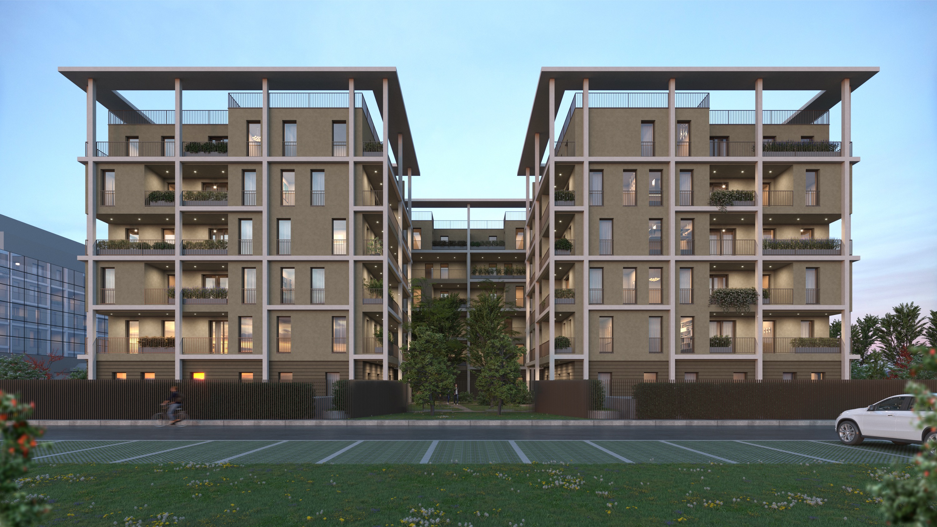 Porzione di edificio interno cortile, con affaccio su giardino piantumato. Originariamente uso ufficio, è stato frazionato e trasformato in appartamenti